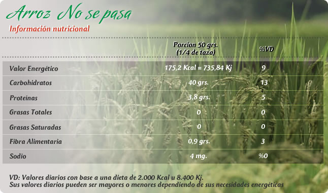 Por el proceso de parbolizado se mantiene las vitaminas y minerales natureles.